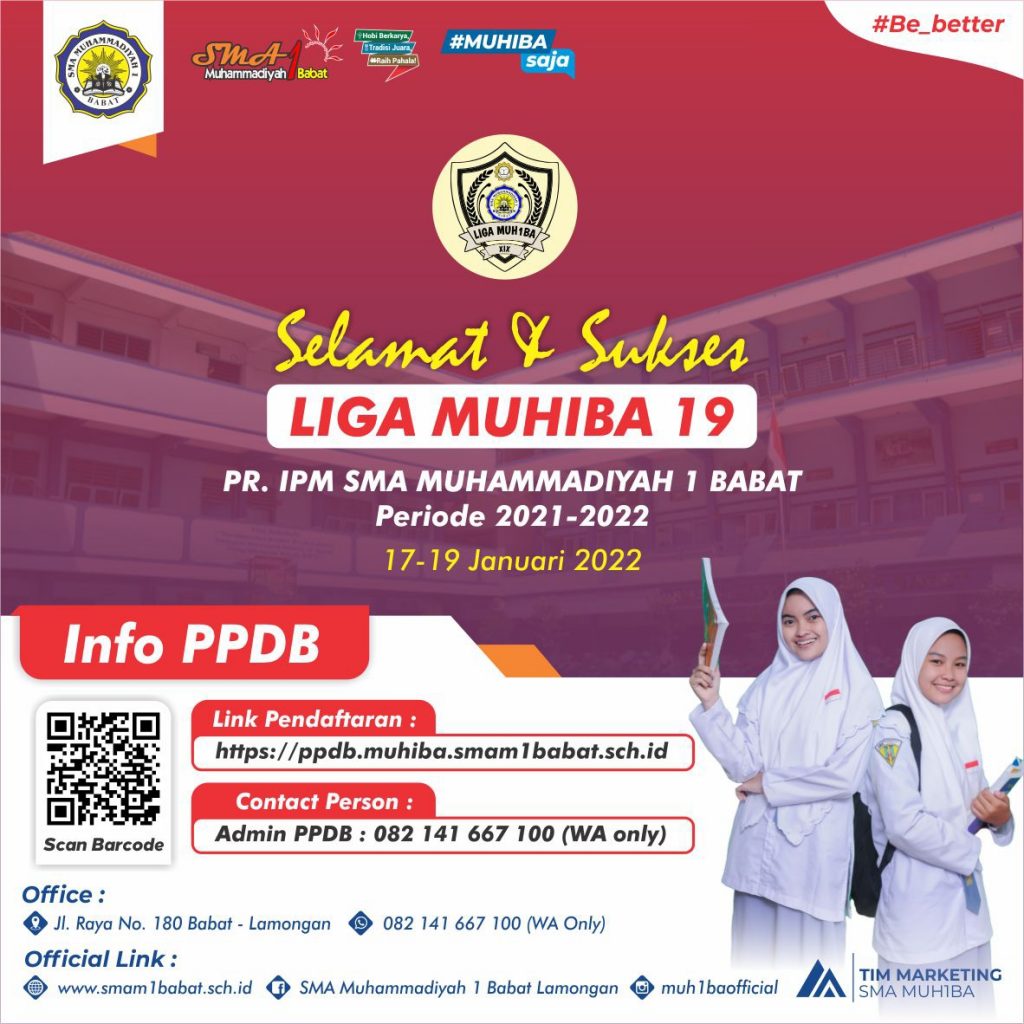 • Kantor: Lt. 1 Gedung SMA MUH1BA Jl. Raya no. 180 Babat-Lamongan